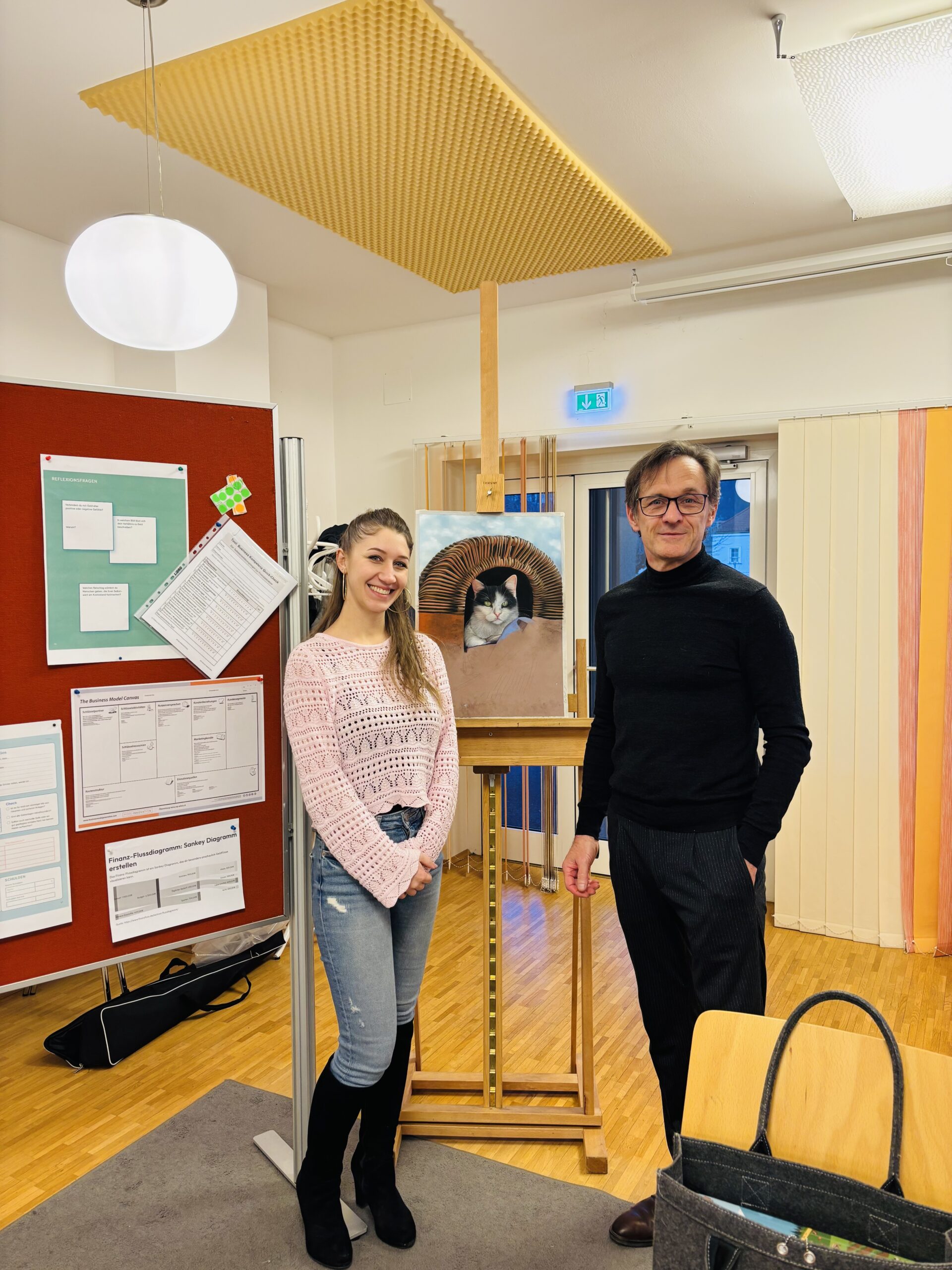 Ein Highlight war die Übergabe eines Coaching-Gutscheins durch Günter Leitner, GF, für ein 1:1 Coaching bei Heidrun Girz. Zudem brachte die Gründerin Stefanie Rössl aus Maria Buch ein selbst gezeichnetes Porträt mit, das sie nun mit professioneller Unterstützung weiterentwickelt, um ihr Business sichtbar zu machen. Stefanie hatte zuvor auch ein Charity-Event organisiert, bei dem über 26.000 Euro für einen guten Zweck gesammelt wurden – eine beeindruckende Leistung, die sie nun in ihr Unternehmertum einbringt.